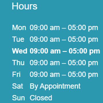 Sabados : 9:00 AM - 2PM (SOLAMENTE LOS PRIMEROS TRES (3) SABADOS DE CADA MES)